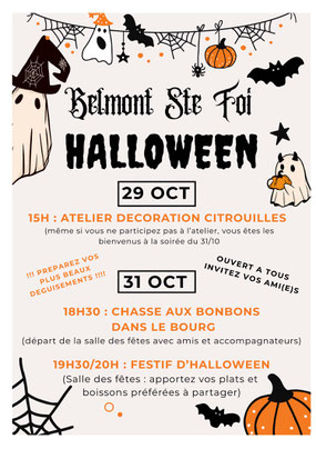 Le jour J, le vendredi 31, venez déguisés pour une grande collecte dans le Bourg, départ à 18 :30 de la salle des fêtes.